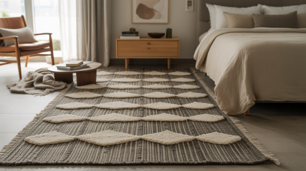 Placing the rug under your bed or seating area creates a cohesive look. It also adds comfort, making your room feel more inviting. This simple addition can make a noticeable difference in your bedroom’s overall vibe.