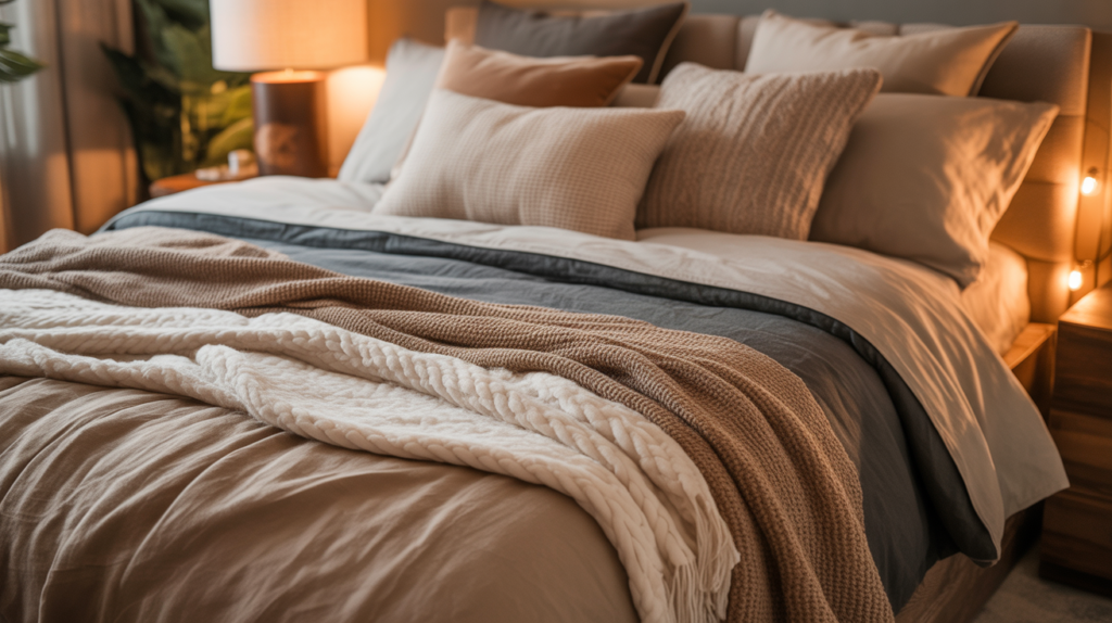Layering is key when it comes to achieving that cozy, Pinterest-worthy aesthetic. Mixing textures such as cotton, knit, and fleece adds depth and comfort to your bed setup. Even on a tight budget, you can find affordable options that look high-end when styled properly. This small change can make a huge difference in how your bedroom feels, turning it into a relaxing and stylish retreat.