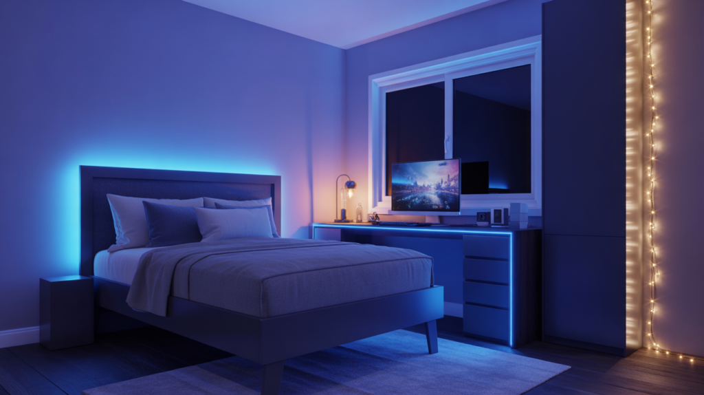 LED lighting is one of the most impactful and affordable upgrades you can make to a men’s bedroom. With just a small investment, you can completely change the mood and atmosphere of your space. Whether placed behind your bed frame, under shelves, or along the ceiling edges, LED strips create a modern and visually appealing glow that instantly elevates your room. This is especially popular for gaming setups or contemporary designs, adding both style and personality.