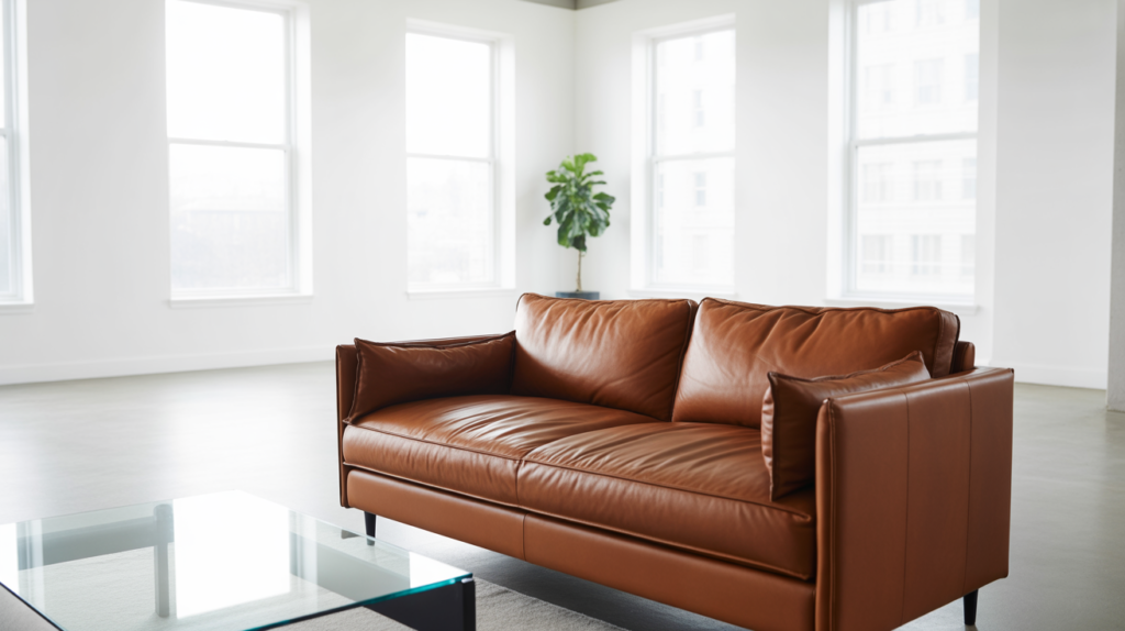 Crisp white creates a strong and refreshing contrast with brown leather furniture. The bright background allows the leather pieces to stand out as the main focal point. This pairing feels clean, modern, and timeless.