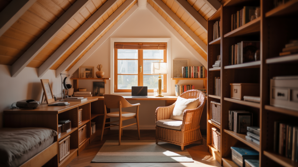 A multi-functional attic space allows you to combine different uses in one area. For example, you can create a workspace, lounge, and storage area within the same room. Using compact and versatile furniture helps maximize efficiency.