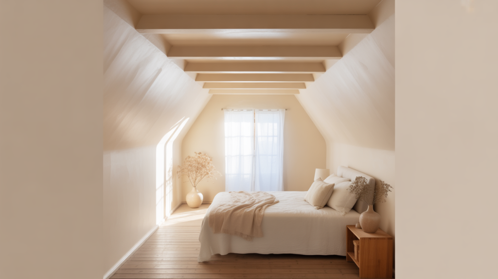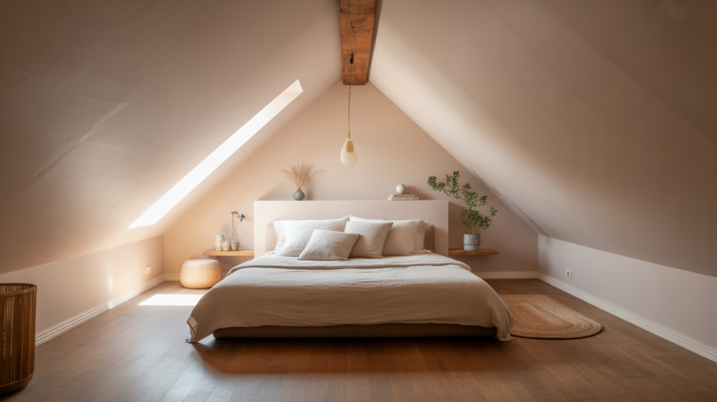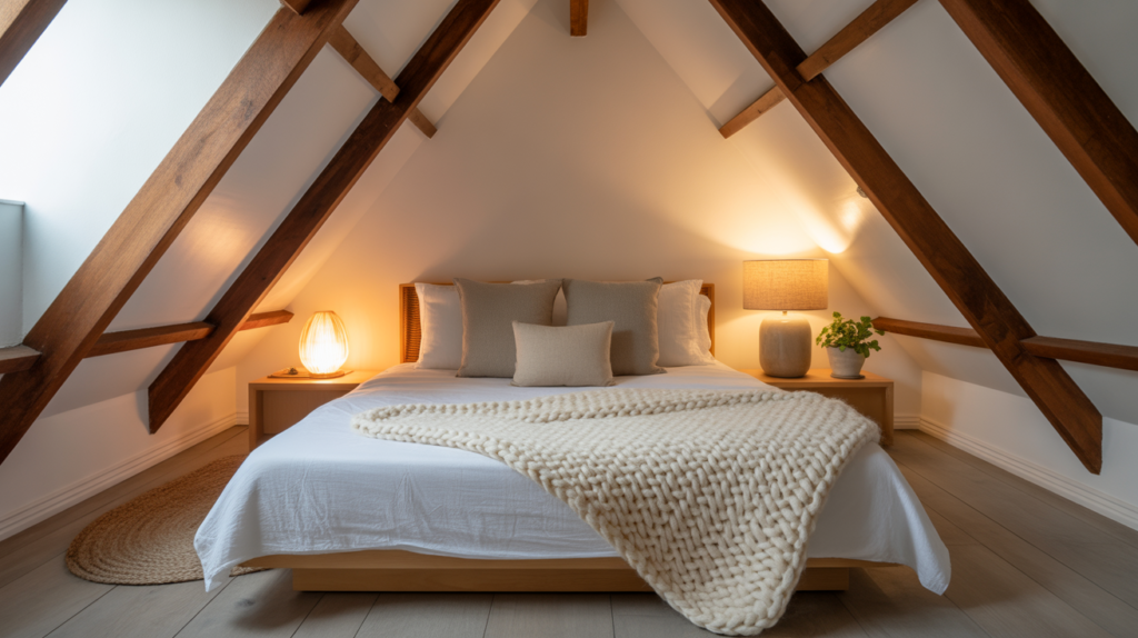 Incorporate soft textiles and subtle accents to add warmth without cluttering the space. Keeping the design minimal ensures the room feels open and inviting. This idea creates a calm and stylish attic that’s both practical and aesthetically pleasing.