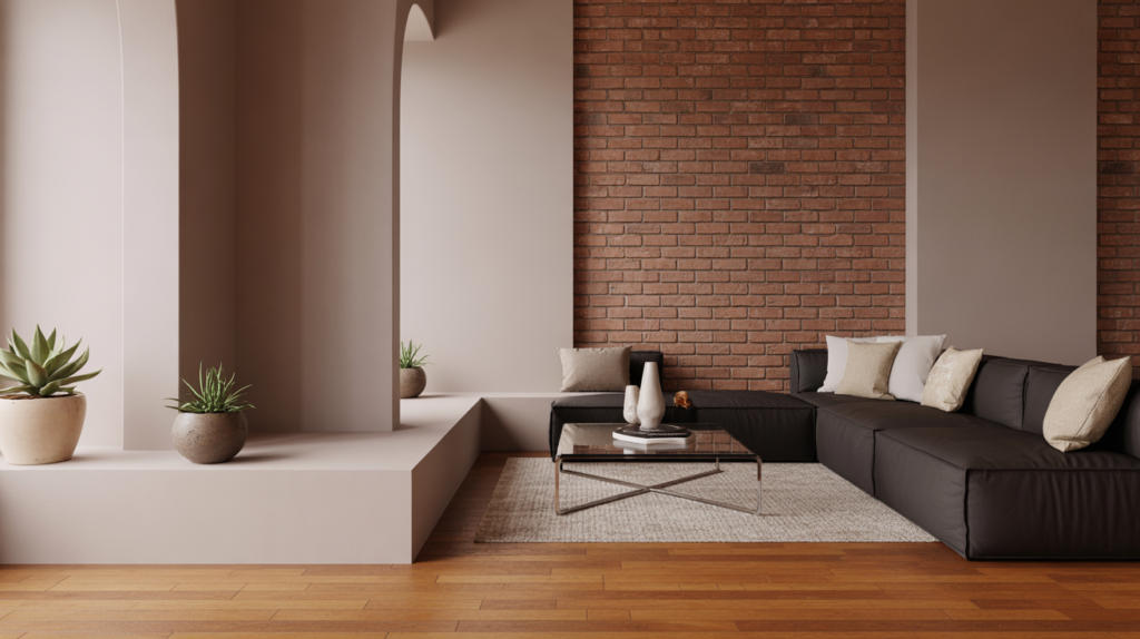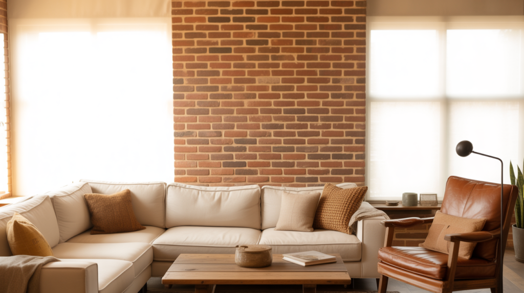 This color works especially well in living rooms and dining areas where comfort and brightness are equally important. Warm cream reflects natural light beautifully, helping the space feel open and airy. It also softens the boldness of the brick, creating a more relaxed environment. The result is a welcoming interior that feels both elegant and livable.