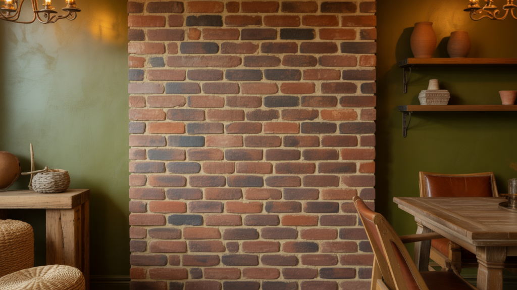 It works well in both modern and traditional interiors. Ivory walls create a smooth and elegant background. The brick remains the focal point without feeling too bold. The overall space feels light, warm, and inviting.